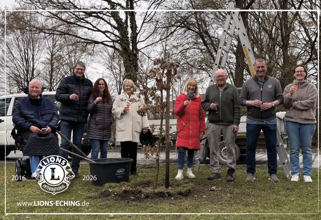 Diese Eiche erzählt eine ganz eigene Geschichte: Vor zehn Jahren brachte Lions-Freund Sepp Riemensberger eine kleine Eichel aus Berlin mit. Mit Geduld und Liebe zog er sie zu einem kräftigen jungen Baum heran und stellte ihn nun als Spende zur Verfügung.