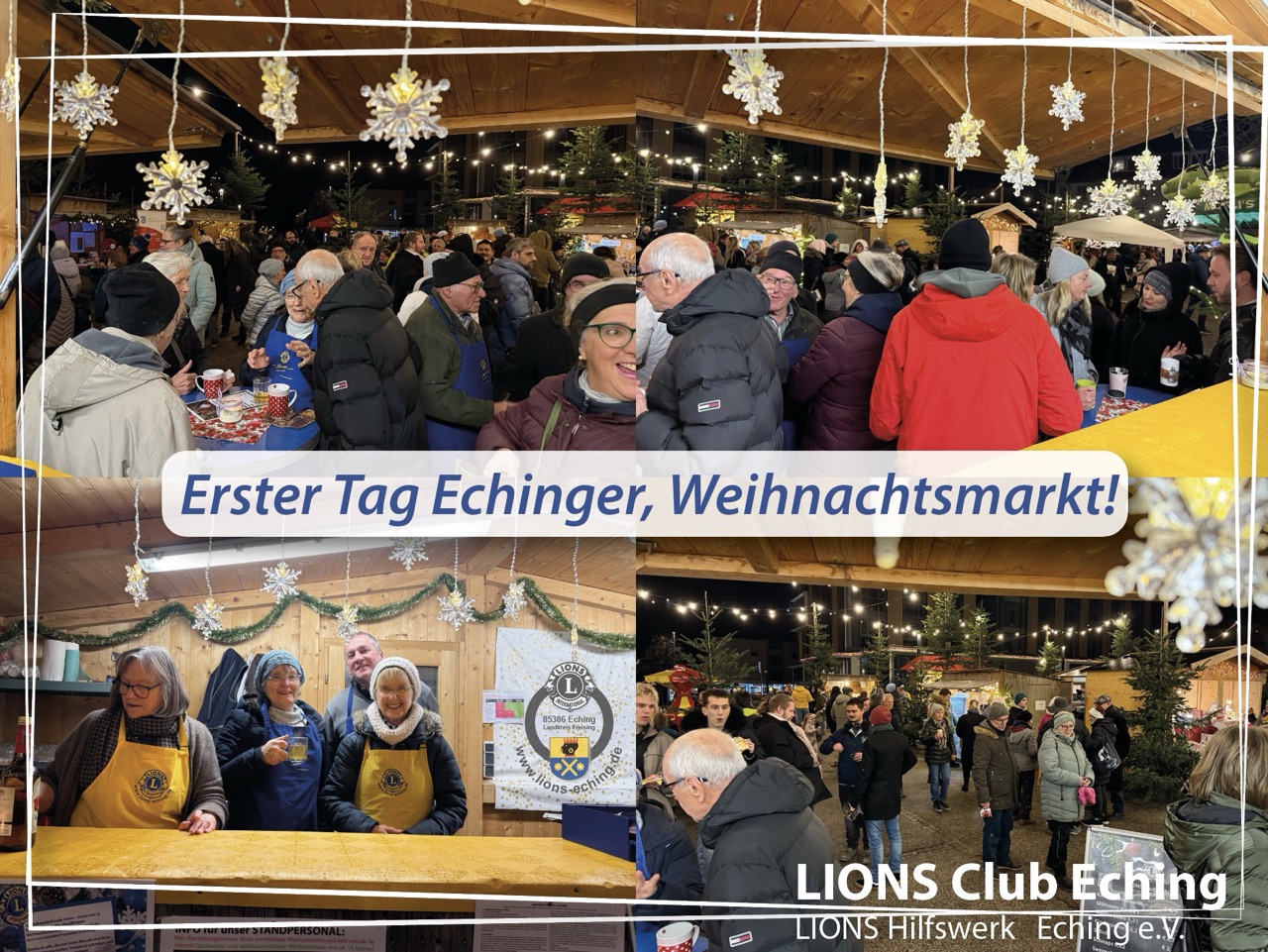 Am 6. Dezember 2025 öffnete der traditionelle Christkindlmarkt in Eching pünktlich um 15 Uhr seine Pforten. Der Lions Club war wieder mit einem großen, liebevoll gestalteten Stand vertreten und sorgte mit seinem bekannten Angebot für vorweihnachtliche Genüsse.